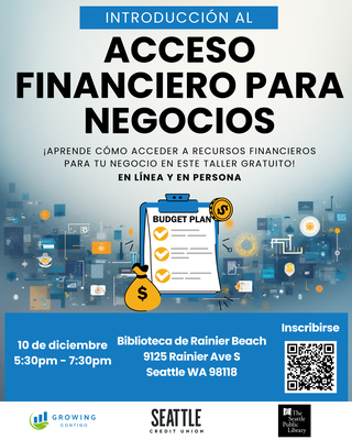 ¡Haz crecer tu negocio! Únete a Growing Contigo en un taller gratuito bilingüe (inglés y español) presentado por Seattle Credit Union para aprender cómo acceder a recursos financieros.